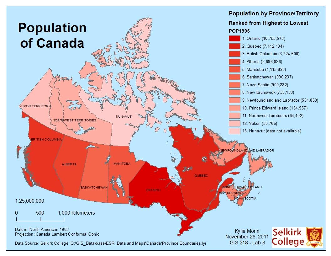 Canada carte de la population